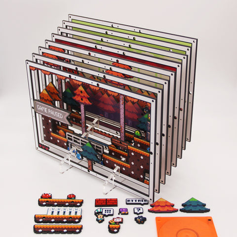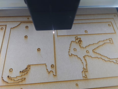 Each item is constructed from multiple layers of laser cut 3mm MDF with an adhered high quality digital print. Layers are stacked and aligned via the use of 3D printed rods and precisely cut guide holes ensuring accuracy. Print alignment details have a tolerance of 0.5mm and the minimum cut size we make is 1mm – any smaller than this and the layers warp too much!