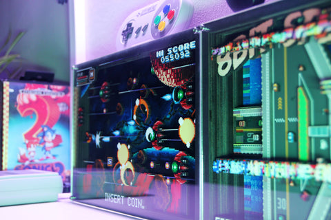 Gaming in the late 80's and 90's has had a lasting impression on us at Sprixels. Its simplified interpretation of complex objects, its vibrant colour scapes, and its immediate nostalgia hit have hooked us and never let go. We take great pride in creating unique stand out pieces that bring back those retro vibes. Emphasising depth through layered pixel art adds a new dimension to its 2D on screen rendition, providing a real parallax effect that adds its own natural shading to objects behind. Photos struggle to do the effect real justice!